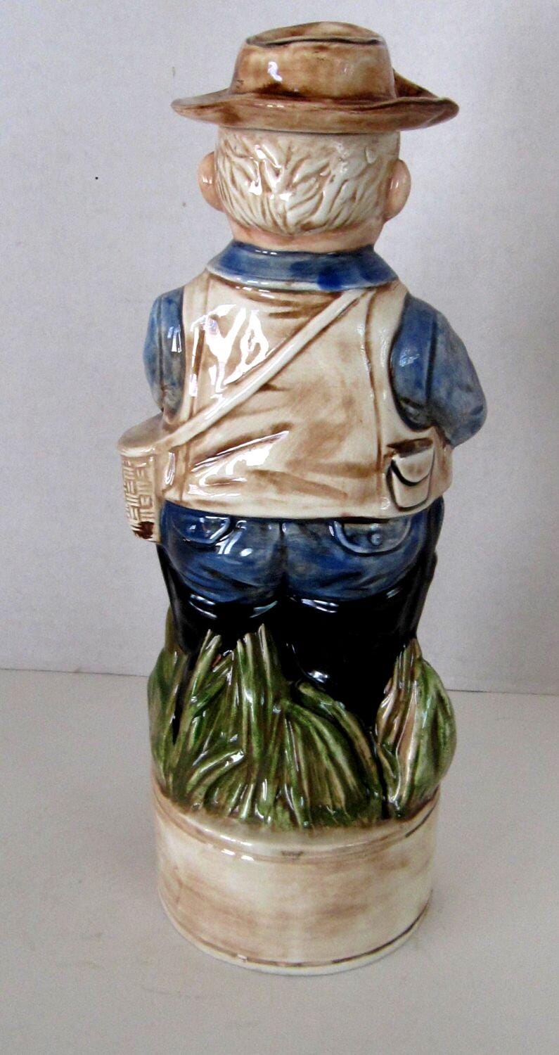 Beautiul Vintage Fisherman Liquor Decanter 12 inches high all hand made, painted. great father day, Christmas or Aniversary gift. From Alberta Mold Co 1967.