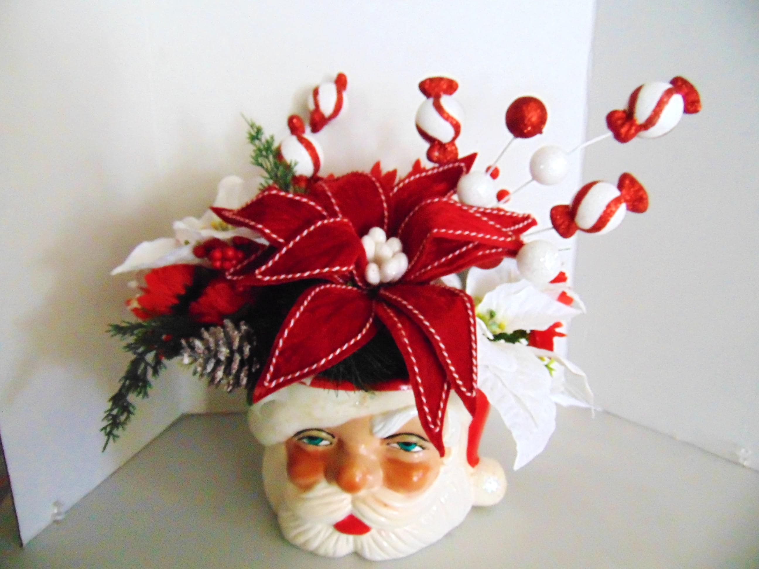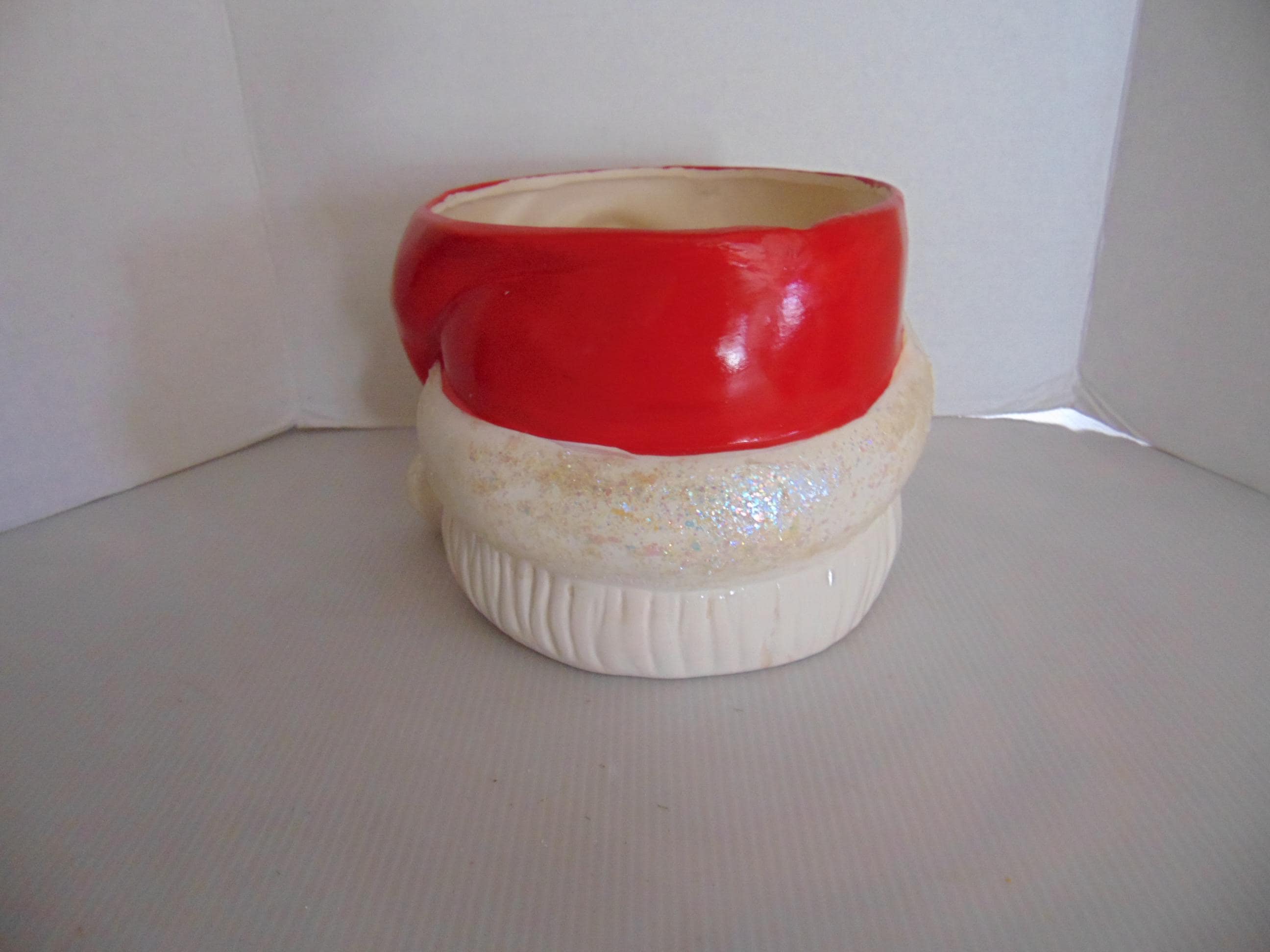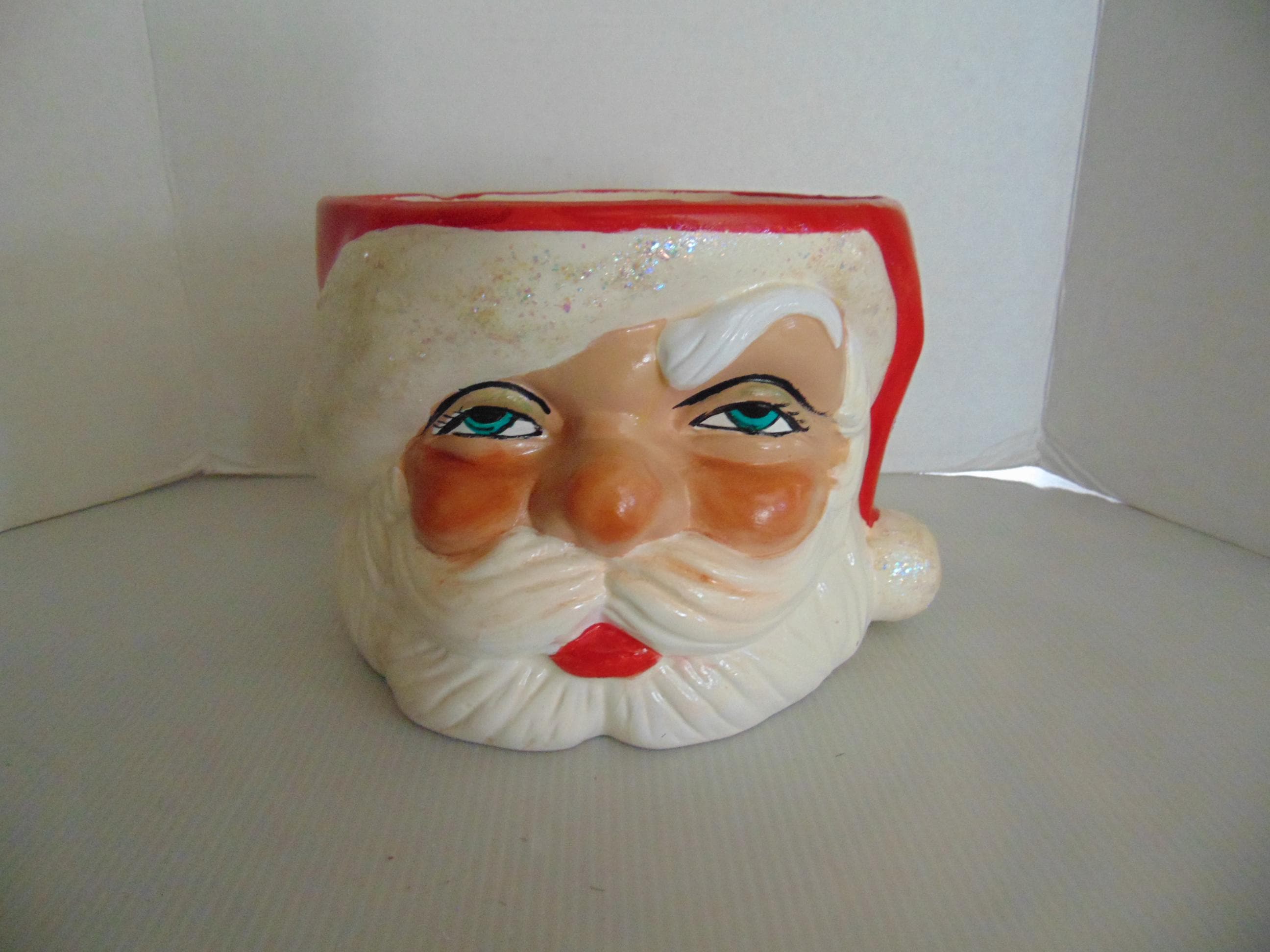 This is a great antique Christmas pottery Santa. As you can see the paint is perfect condition. It is an old heavy Santa which would be a great Christmas addition. Check the photos as they are a major part of the description of these old Christmas items. The Flowers are not included